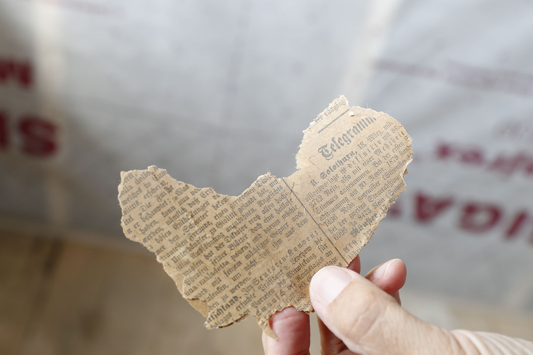 Bei den aktuellen Umbauarbeiten traten ca. 160-jährige Zeitungen zu Tage, die bei einer früheren Sanierung als Trägerschicht für die Tapeten dienten. In altdeutscher Schrift geben sie Einblick in die Geschichte und erzählen Geschichten aus vergangenen Zeiten: In einer Story geht es um die Produktion von Wanduhren, in einer Anzeige um Cravatten für 25 statt 30 Cts.